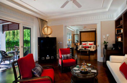 Chacune des 30 suites de l'hôtel présente une décoration chaleureuse et raffinée mêlant style rétro et contemporain. Cet hébergement reflète la nostalgie du passé, et offre tout le confort moderne requis pour un établissement de luxe. Les suites sont très spacieuses et possèdent toutes, à l'exception des Louis Leonowens Pool Suites, une grande véranda aménagée de chaises en rotin et d'un canapé. Vous pouvez vous relaxer en toute intimité dans le cadre agréable offert par le jardin tropical. Derrière un large dressing se trouve la salle de bains avec baignoire et douche séparées. Les suites du rez-de-chaussée disposent en plus d'une douche extérieure. Pour votre confort, elles sont équipées d'un téléviseur, d'un coffre-fort, d'un minibar, d'un nécessaire à thé et café, d'un accès internet gratuit en Wi-Fi, d'une station d'accueil pour lecteur mp3 et de l'air conditionné.