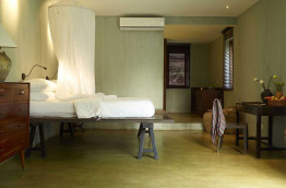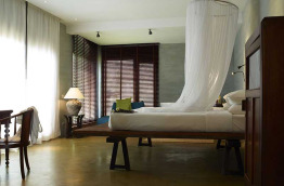 Les 18 chambres et suites de cette propriété présentent toutes des caractéristiques différentes. Elles sont réparties au rez-de-chaussée ou au 1er étage des quatre villas qui composent la propriété (New Vill, Blue Villa, Brown Villa, Grey Villa). Les chambres offrent des vues agréables sur le jardin ou la mer. Elles sont décorées avec élégance dans le style traditionnel khmer et dégagent une atmosphère intime et exotique avec des matériaux naturels et des tons chaleureux. Elles présentent des lits en bois de teck, des objets anciens ou modernes inspiré de l'art khmer traditionnel. Toutes les chambres et suite possèdent un petit réfrigérateur, un coffre-fort, un accès internet en Wi-Fi (gratuit) et l'air conditionné. Les chambres ne possèdent pas de téléviseur.