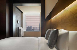 Les 90 Deluxe Rooms mesurent 45 m2 et ont vue sur la ville. Leurs pièces de vie ont l'avantage de pouvoir être séparées de l'espace de couchage, par un système de panneau en soie coulissant.