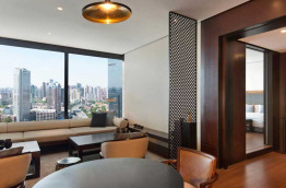 Les 16 Junior Suite font 50 m2. Ces suites ont vue sur les buildings de Shanghai et disposent de salles de bains spacieuses. Elles aussi proposent une fine séparation entre leurs chambres et leurs pièces de vie.