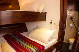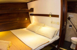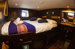 | Aménagements cabines | 2 cabines équipées d’un lit double, 2 cabines équipées de lits jumeaux superposés et 2 cabines équipées d’un lit double et d’un lit simple superposé. Toutes les cabines disposent de l’air conditionné, d’une salle de bains privée avec toilettes et douche, d’un coffre-fort et d’un espace de rangement. |