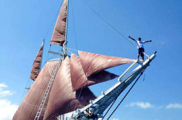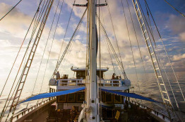 | Armement bateau | Voilier de type ketch possédant 600 m2 de voilure, 2 grands voiles à corne, 2 voiles de flèche, 1 trinquette et 2 focs - 1 Moteur Mercedes 12 cylindres - Vitesse de croisière 7 à 10 nœuds, vitesse maximum 12 nœuds 2 générateurs électriques. Système de navigation Max Sea, VHS, Furuno GPS, Koden radar et échosondeur. Téléphone satellite. 2 annexes, capacité totale de 25 personnes, équipées chacune d'un moteur Yamaha de 40 ch. Autres équipements de sécurité : 50 gilets de sauvetage, extincteurs, pompe à incendie, kit de premiers soins, défibrillateur, centrale d'alimentation en oxygène médical. |