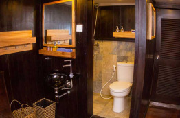 Construit en 1997 à Kalimantan sur le format traditionnel indonésien, ce grand bateau à deux mâts est un phinisi de 42 m de long. Très spacieux, le Ombak Putih offre une surface approximative de 400 m2 d’espaces partagés, intérieurs et extérieurs, répartis sur 2 de ses 3 ponts. Il possède 12 cabines confortables situées sur le pont inférieur. Elles peuvent accueillir jusqu’à 24 passagers et comptent 4 cabines équipées d’un lit double, 4 cabines équipées de lits jumeaux superposés et 4 cabines équipées d’un lit double et d’un lit simple superposé. Il possède également un pont supérieur avec deux grands solariums et un pont principal composé d’une salle à manger extérieure, d’un bar et d’un espace de détente situé en extérieur, ainsi qu’un bar intérieur climatisé. Toutes les cabines possèdent un hublot et disposent de l’air conditionné, d’une salle de bains privée avec toilettes et douche, d’un coffre-fort et d’un grand espace de rangement. Elles sont chaleureuses avec du mobilier en teck et une décoration de style traditionnel. L’équipage se compose de 15 membres. Un téléviseur ainsi qu’une sélection de DVD et une chaîne Hi-Fi sont à votre disposition dans le « lounge ». Les serviettes de toilette et de plage sont mises à votre disposition à bord.