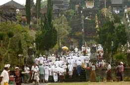 Départ en direction du volcan Agung, le point culminant de Bali. C’est sur son flanc que se trouve le temple le plus sacré de l'île : Besakih. C’est un grand complexe fondé au VIIe siècle comme sanctuaire shivaïte, avant de devenir au XIe siècle un lieu de culte hindouiste. Toutes les cérémonies hindouistes qui ponctuent la vie des Balinais s'achèvent à Besakih. C'est dire si ce temple est important et vénéré…