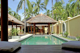 Les 18 Private Pool Villas sont disséminées dans la végétation de l'île. Chaque villa a été conçue pour offrir un espace privilégié et intime aux visiteurs. Leur surface s'étend sur 320 m2, et leur configuration reprend les codes d'architecture des maisons indonésiennes. Ainsi, plusieurs pavillons sont à votre disposition. Ils s'organisent autour d'une grande piscine privée de 4 m sur 8 m. Le plus vaste contient la chambre équipée d'un lit double ou de lits jumeaux, et d’une salle de bains avec douche. De part et d'autre de la piscine se trouvent deux espaces dont un « bale » pour vous reposer à l’ombre. L'autre contient deux bains de soleil pour ceux qui souhaitent prendre quelques couleurs. Un dernier pavillon accueille un vaste salon extérieur couvert.