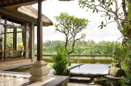 Enfoui en pleine végétation, le Pita Maha Resort and Spa surplombe la vallée de Tjampuhan, il présente un style chaleureux rappelant la conception d'un village balinais.