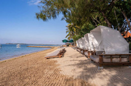 Cet hôtel du Sud-Est de Bali est accessible après 20 minutes de voiture depuis l'aéroport. Installé directement sur la plage, il possède un très beau jardin traditionnel. Les divers bâtiments de taille restreinte offrent intimité et tranquillité. Sa situation privilégiée vous permet également de profiter de l'animation de Sanur ou de partir aisément à la découverte de l'île.