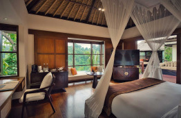 Ce complexe hôtelier propose 38 villas de prestige, toutes dotées d'une piscine privative surplombant la rivière Ayung. Elles se composent d'une vaste chambre avec un lit king-size ou deux lits simples, et d'une salle de bains avec baignoire. Le funiculaire privé assure un accès facile à votre villa. Toutes disposent bien sûr de l’air conditionné, de l’accès internet Wi-Fi, d’une télévision, d’un minibar, d’un nécessaire à thé et café et d’un coffre-fort.