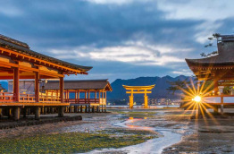 En séjour à Hiroshima, franchissez la mer de Seto pour partir à la découverte du sanctuaire d'Itsukushima, situé sur l'île de Miyajima. Cet élégant ensemble architectural semble flotter au-dessus de l'eau. Il est annoncé par l'un des toriis les plus célèbres du Japon. Cette porte traditionnelle, avancée dans la mer, vous rappelle que vous vous apprêtez à débarquer sur une île sacrée.