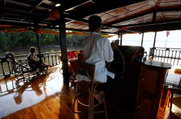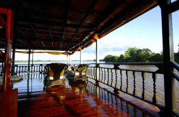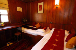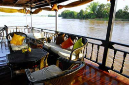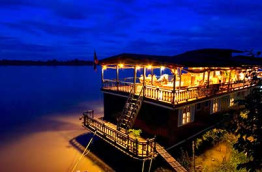 Le Vat Phou était autrefois une barge utilisée pour le transport du teck entre Vientiane et le Sud-Laos. Pour le plaisir des visiteurs, il a été reconverti en luxueux hôtel flottant. Mesurant 34 mètres de long et 7,5 mètres de large, cette confortable embarcation navigue aujourd'hui entre Champassak et l'île de Khong. Le Vat Phou compte 12 cabines équipées de lits jumeaux et de l'air conditionné. Votre salle de bains privée possède une douche et des toilettes. 15 membres d'équipage sont présents à bord, un guide anglophone et un guide francophone vous accompagnent pendant vos visites et vous assistent pendant votre croisière. La cuisine du Vat Phou est raffinée et un bar est à votre disposition.