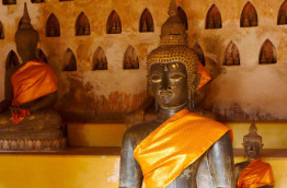 Promenade dans le marché coloré de Thongkhankham, puis découverte de la « Ville du Santal ». Vientiane présente des boulevards bordés d’arbres et quelques temples majeurs incontournables au Laos. Visite du Vat Sisaket, à l’architecture typiquement thaïlandaise. Édifié entre 1819 et 1824, c’est le plus beau temple de la ville. Il renferme notamment plus de deux mille statuettes de Bouddha nichées deux par deux dans le mur d’enceinte du sanctuaire. Après avoir visité ce site, vous traversez la rue pour rejoindre le Vat Ho Phra Keo. Cet autre temple majeur de Vientiane a été construit au XVIe siècle. Il aurait abrité le fameux « Bouddha d’Emeraude » qui est aujourd’hui exposé au Vat Phra Keo de Bangkok. En 1936, il a été transformé en musée. De nos jours vous pouvez y contempler, une très belle collection de bouddhas en bronze et d’objets d’art sacrés. Continuation vers le marché de Talat Sao où vous pourrez vous procurer des tissus traditionnels et des vanneries. Déjeuner libre dans un restaurant local. L’après-midi, visite du Pha That Luang, le temple le plus vénéré de Vientiane et le symbole du pays. Ses fondations dateraient du IIIe siècle avant J.-C. et son imposant stûpa, haut de 35 mètres, contiendrait un cheveu de Bouddha. Vous prenez ensuite la direction de l'avenue Lane Xang, pour rejoindre le Patuxai. Ce monument est un arc de triomphe, édifié dans les années 60, en hommage aux victimes des guerres prérévolutionnaires. Selon votre souhait, vous pouvez accéder à son sommet pour profiter d'une vue panoramique de la ville. Poursuite en direction du That Dam, puis marche en direction du Mékong en passant par le quartier de Nam Phou. Pour achever votre journée, vous prenez part à une agréable promenade au bord de l'eau, en profitant des vues agréables sur le Mékong et sur la Thaïlande voisine. Dîner libre et nuit à l’hôtel.
