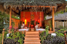 Côté repas, chaque soir vous sera servi un menu traditionnel différent composé de 5 plats. Possibilité de prendre son dîner dans un pavillon (sala) sur l'îlot au milieu de la rivière que l'on atteint par un pont suspendu.