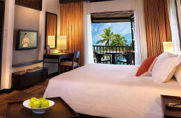 Les 352 chambres et suites sont réparties dans 51 bâtiments disséminés dans un vaste jardin paysager de 4 hectares. La décoration intérieure combine l'utilisation de bois local et un mobilier moderne. Les chambres sont spacieuses et offrent un bon niveau de confort. Elles sont toutes équipées d'un téléviseur, d'un minibar, d'un coffre-fort, d'un accès internet en Wi-fi et de l'air conditionné.