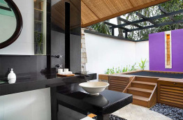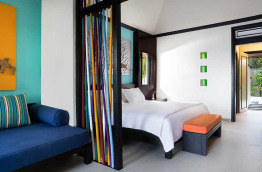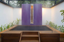 6 Beachfront Rainmist Villa, sont identiques aux précédentes, mais bénéficient d’un immense brumisateur en lieu et place du bain à jets dans la cour privée.