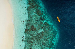 Si l’île d’Ihuru vous semble trop petite, vous pouvez emprunter les navettes régulières en bateau pour aller explorer les plages et récifs de l’île de Banyan Tree Vabbinfaru juste en face.