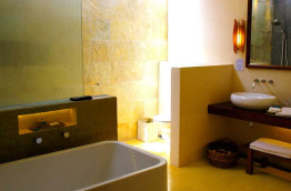3 Honeymoon Pool Villa de 142 m2 avec un grand lit king-size, et 1 Family Pool Villa de 224 m2 avec deux lits jumeaux, plus un lit king-size. Elles sont situées dans les jardins, en arrière de la propriété, et bénéficient des services ci-dessus, avec en plus un petit bassin pour se rafraîchir, et une jolie terrasse aménagée avec une partie ombragée. Elles disposent également d’une machine à expresso. Le cadre est très reposant, vous avez le sentiment d’être comme dans votre maison privée, et vous bénéficiez incontestablement de plus d’intimité et de calme.