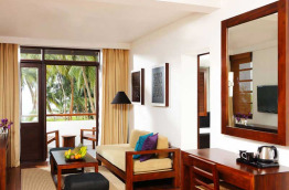 Les 105 chambres de la résidence sont aménagées dans une ambiance zen, aux tonalités crème. La décoration associe des lignes contemporaines à des ornements traditionnels discrets, tels que des têtes de lits en bois sculptés et des textiles aux motifs orientaux. Comme partout ailleurs au Avani Kalutara Resort, le mobilier est principalement conçu à partir de bois exotiques.
