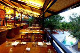 Le restaurant du Cinnamon Wild Yala prépare des buffets occidentaux, indiens et sri lankais. Sa terrasse surélevée et les matériaux naturels qui composent sa décoration en font un lieu authentique et sophistiqué.
