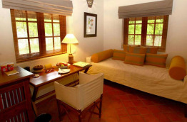 L'hôtel propose 68 chalets nichés au milieu des arbres et de la faune locale. L'ambiance sonore y est totalement dépaysante, elle se situe à mi-chemin entre celle de la jungle et de l'océan. Des singes parcourent les toitures des cabanons et des caméléons se camouflent sur les terrasses. Ces habitations isolées fournissent une intimité appréciable à leurs occupants. Décorées sobrement, avec du mobilier en bois tropical et des surfaces en feuilles de palmier tissé, elles participent à l'exotisme du séjour.
