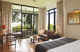 Les 12 Suites mesurent 43 m2 et sont réparties dans les différents étages des ailes Dambulla et Sigiriya. Elles se composent d'une chambre avec lit double et d'un salon aménagé. La salle de bains possède une douche et un bain à jets séparés. La chambre, comme le salon, offre un accès à un balcon privé. Leurs vues peuvent être orientées soit vers le lac, soit vers la jungle.