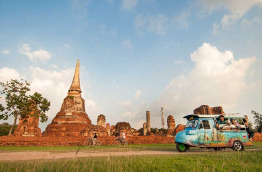 Départ de votre hôtel juste après le petit-déjeuner, en direction d’Ayutthaya. C’est l'une des célèbres capitales antiques du Royaume du Siam, aujourd’hui classée au Patrimoine mondial de l'UNESCO. Vous visiterez les plus importants sites et temples d'Ayutthaya, comme le Wat Chai Watthanaram, le Wat Maha That ou encore le Wat Sri Sanphet, élément symbolique situé dans l'enceinte du Palais royal. La visite d’Ayutthaya sera pour sûr un moment phare de ce circuit.