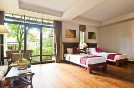 L'hôtel se compose de 77 chambres et suites réparties dans un joli jardin tropical à la végétation dense. Tout est mis en œuvre pour recréer l'ambiance d'un village thaïlandais. Les bâtiments présentent une architecture traditionnelle, les chambres sont décorées avec des boiseries et des tissus locaux. Les intérieurs possèdent des atmosphères chaleureuses. Toutes les chambres et suites disposent d'un téléviseur, réfrigérateur, coffre-fort, accès internet en Wi-fi (gratuit) et l'air conditionné.