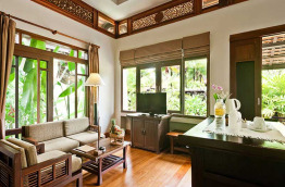 Les 29 Thai Style Bungalows mesurent 50 m2. La vaste chambre présente un lit double ou 2 lits jumeaux, ainsi qu'un coin salon avec fauteuils, canapé et table basse. La salle de bains possède une douche. Les Thai Style Bungalows s'ouvrent d'un côté sur une petite terrasse équipée de deux transats, et de l'autre sur un jardinet privatif abritant une baignoire extérieure.