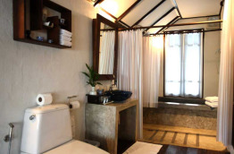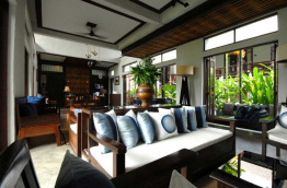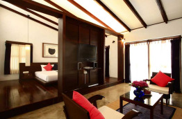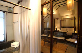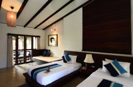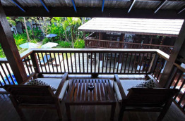 La Banthai Suite présente une superficie de 55 m 2, elle se compose d'une chambre et d'un salon séparé par une paroi en bois local. Son salon est équipé d'une table basse, de plusieurs fauteuils et d'un petit bureau. La Banthai Suite vous permet de profiter de la plus agréable terrasse de l'hôtel. Relativement large, cet espace extérieur surplombe la piscine.