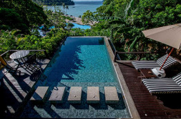 Les 8 Hillside Pool Villas ont un volume de 125 m2 et disposent, chacune, d'une piscine privée. Situées un peu plus en hauteur que les bungalows, elles offrent des panoramas incroyables sur la baie. La salle de bains de ces villas possède une douche et un bain à jets.