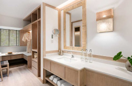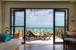 14 Beachfront Junior Suites de 79 m2, sont orientées vers le rivage et proposent une vue panoramique sur la baie. Les résidents trouveront un bain à jets dans leur salle de bains. Des services spécifiques sont réservés aux clients de ces suites.