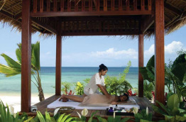 2 Suites Bungalows uniques en front de mer avec accès direct à la plage offrent un cadre idéal pour les petites familles ou les couples en quête d'un peu d'intimité. Chaque bungalow se compose d'une chambre à coucher principale avec lit king-size et salle de bains, d'un jardin et d'une terrasse extérieure privée, ainsi que d'une partie séjour séparée avec deux lits jumeaux et une douche semi-extérieure.