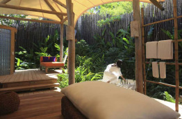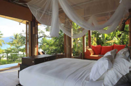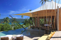 L'Ocean Pool Villa fait 403 m2 et sa piscine 135 m2. Une salle de bains d'extérieur est installée dans son jardin. Elle offre, en outre, une vue et un accès direct au rivage.