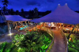 The View accueille la clientèle de l’hôtel sur une terrasse en bois et en bambou, construite parmi la végétation, à quelques mètres du rivage. Les créations du chef et de sa brigade conjuguent produits locaux et techniques continentales.