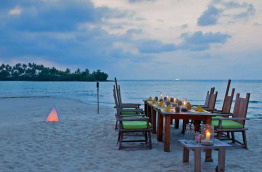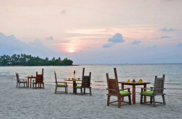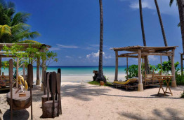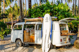 The Beach est le bar du Soneva Kiri. Sa terrasse est installée à même le sable. Il propose des rafraîchissements ainsi que des spécialités locales cuites au feu de bois.