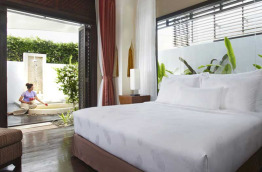 Les Deluxe Lagoon Pool Access Rooms sont situées au rez-de-chaussée. Elles possèdent une terrasse privative avec deux fauteuils et une table basse. Cet espace extérieur vous offre un accès immédiat à la piscine lagon de l'hôtel.