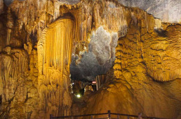 Cette journée est consacrée à la visite des grottes les plus fameuses de la région. En fonction de vos déplacements et de l'organisation de vos visites, un arrêt sera prévu pour votre déjeuner libre. Ce matin, vous poursuivez votre route vers le Nord en circulant sur la Victory Road 20, anciennement appelée la Piste Ho Chi Minh. Vous y visiterez la grotte des 8 femmes et découvrirez également le temple érigé en mémoire des combattants tombés lors des opérations de défense de la Victory Road 20. Vous prendrez ensuite la direction d'un site exceptionnel découvert en 2005. La gigantesque grotte de Thien Duong, dont le nom signifie « grotte du paradis ». Cette caverne est considérée comme la plus vaste de l'Asie du Sud Est. Elle mesure près de 31 kilomètres de profondeur et sa portion la plus large s'étend sur près de 150 mètres. La grotte est entièrement sèche, vous y accéderez en gravissant un escalier comptant près de 500 marches. Véritable cathédrale souterraine, le spectacle qui se dévoile sous vos yeux est unique. Des stalactites et des stalagmites surgissent tout autour de vous et créent une atmosphère surréaliste. Par la suite, vous rejoignez la source de Nuoc Mooc. Si vous le souhaitez, vous pourrez vous baigner dans les eaux claires de ce cours d'eau, ou profiter d'un moment libre pour vous reposer. Votre route se poursuit enfin vers votre hôtel situé à Dong Hoi. Installation, dîner et soirée libres. Nuit à l'hôtel.