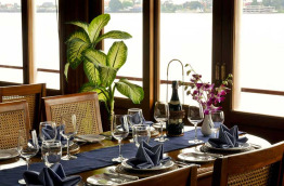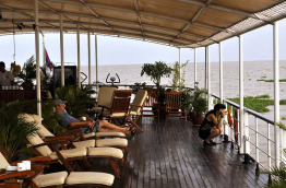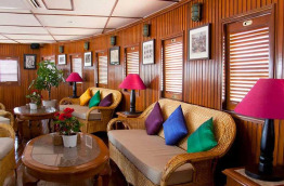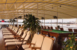 Le R/V Mékong Pandaw dispose d’un pont supérieur ouvert sur l’extérieur et partiellement couvert pour vous abriter du soleil. Un bar y est accessible à chaque instant. Le bateau possède également un pont appelé Spa Deck qui accueille plusieurs salles de massage, une galerie d’art, une bibliothèque, une boutique et une salle de sport. Sur le pont intermédiaire (main deck), un restaurant climatisé vous propose des repas raffinés aux saveurs variés.