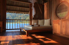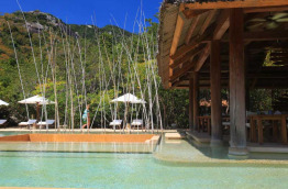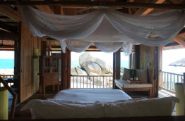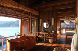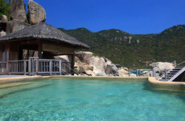 Les 5 Water Pool Villas offrent une superficie de 154 m2, elles présentent une configuration similaire aux Rock Pool Villas. La terrasse est construite sur pilotis entre les rochers environnants et vous permet d'accéder immédiatement à la mer grâce à un petit escalier qui descend dans l'eau.