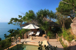 Les 10 Hill Top Pool Villas mesurent 158 m2 et se composent de deux pavillons reliés par une large terrasse. Le premier accueille un petit salon privé avec lit de repos. Le second pavillon regroupe la chambre et la grande salle bains attenante. Au pied de la chambre, la terrasse se prolonge et vous donne accès à la piscine privée. Les Hill Top Villas sont situées dans les hauteurs du Resort. Elles offrent une vue imprenable sur la mer, ainsi qu'une grande intimité.